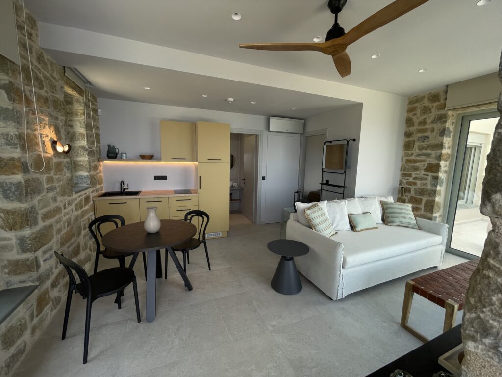 Each suite, designed for comfort and cosiness, can host up to 3 guests and offers one bedroom, one bathroom and one kitchen/living open space, as well as comfortable outdoors space by the pool.