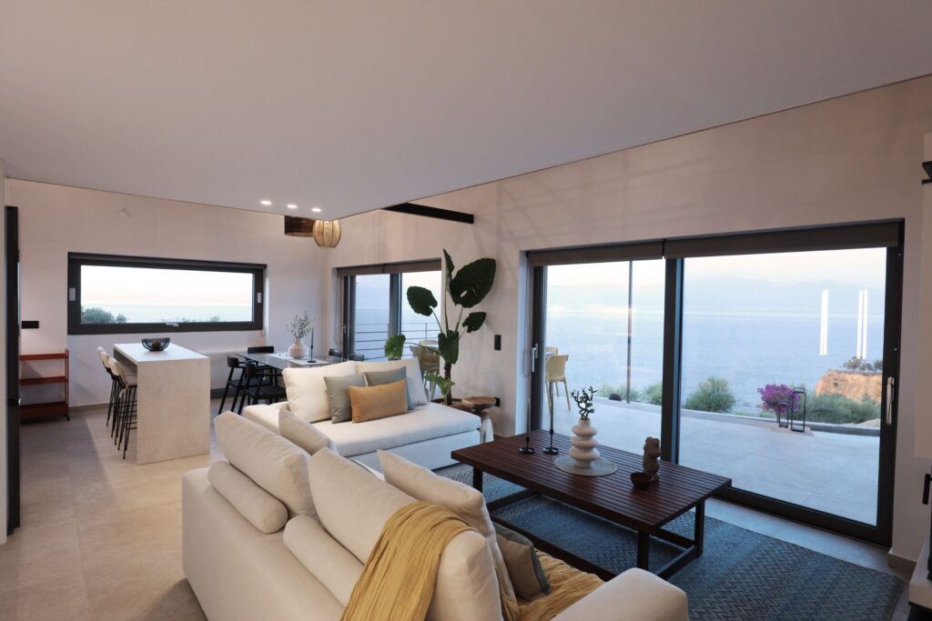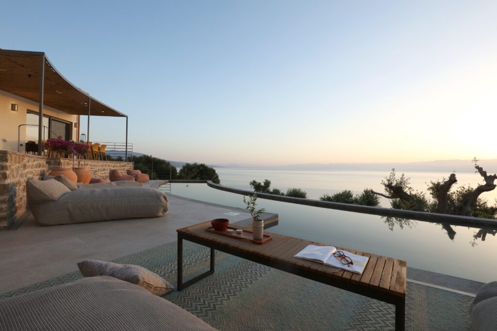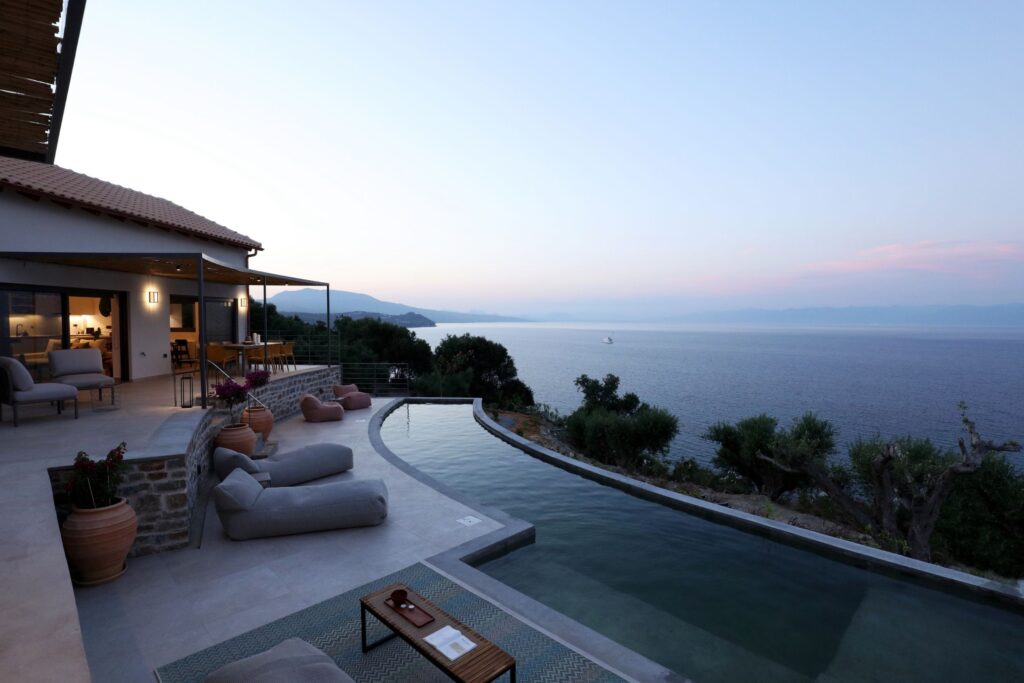 A space where architectural elegance and interior sophistication harmoniously blend with the peacefulness and nature of the lovely Southern Peloponnese countryside, AkriaThea (Greek ’Akria’ reflecting the magnificent location above the sea, ‘Thea’ the beautiful views) is designed to provide guests with a unique high-end retreat to relax and recharge.